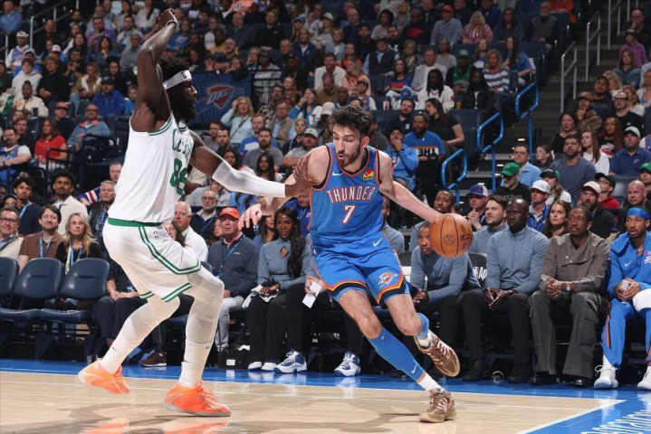 北京时候3月13日,NBA老例赛迎来东西部巅峰对决,卫冕冠军俄克拉荷马雷霆主场104-102险胜波士顿凯尔特东谈主,凭借霍姆格伦终场前0.8秒的罚球准绝杀完成逆转,豪取7连胜的同期赓续富厚定约榜首排位,此役中枢亚历山大更是解锁蚁合127场得分20+的NBA历史第一记载。