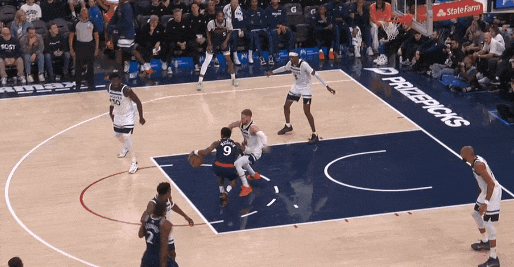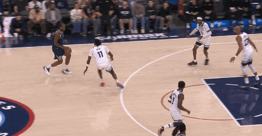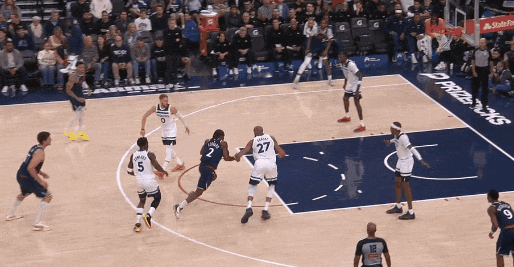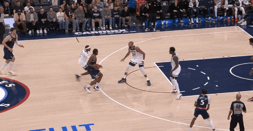 这不错确认之前的一球:莱纳德运球突进,一个急停,里德快速横移到莱纳德正前线,压低重点;莱纳德起手三分——里德为什么要赶紧移到莱纳德前线还下重点?怕莱纳德就势变向径直突。