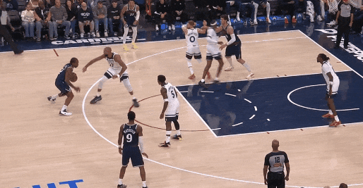 今天开场,戈贝尔被拉到底角,莱纳德趁解脱华兹,内切扣篮——细节:莱纳德趁华兹遁入,一个摈弃推解脱。