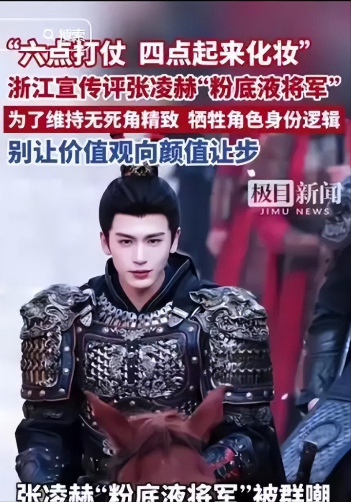 事件的导火索也很浅显,在《逐玉》中,张凌赫上演的“武安侯”谢征本应是缔造沙场、杀伐武断的少年将军,但不雅众看到的却是不管资历何等惨烈的拼杀,他脸上的妆容如故邃密无瑕、发丝依样葫芦的画面。