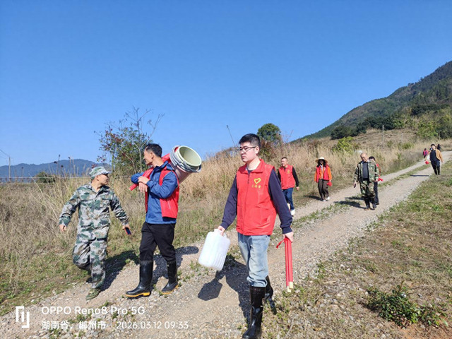 红网嘉禾分站3月12日讯(通信员:李祥华)近日,珠泉镇鳌峰社区贯串县委统战部、县归侨侨眷贯串会,组织社区党员、志愿者赴湖南嘉禾国度丛林公园开展“统战聚力齐心植绿”义务植树行为,以实质步履添绿南岭、好意思化家园,让生态娴雅理念深远东谈主心。