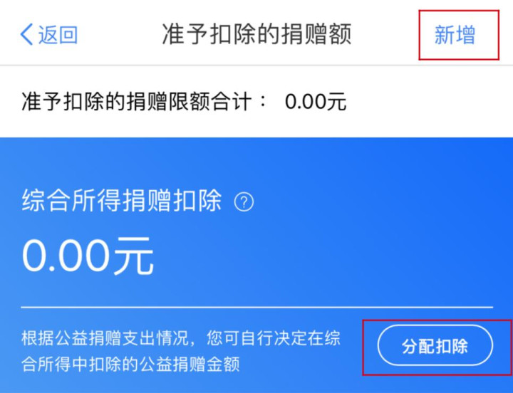 三、在【准予扣除捐赠额】页面点击【分拨扣除】,填写详尽所得捐赠扣除的金额,点击【保存】。若需讲述多项捐赠抵税,连接点击【新增】即可。