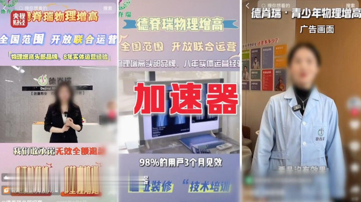记者在各大网罗平台上搜索到的商家宣传帖,各路商家声称我方能给孩子的骨骼装上“加快器”,让青少年身高应答增长好几厘米,这些诱东谈主的首肯,击中了好多家长心中的期盼。但阛阓上这项营业火爆的同期,“3·15”晚会也收到了多位破费者声称我方因此上当上当的投诉信息,这些打着“物理、安全”旗子的增高管事,究竟是高技术,如故破费骗局呢?