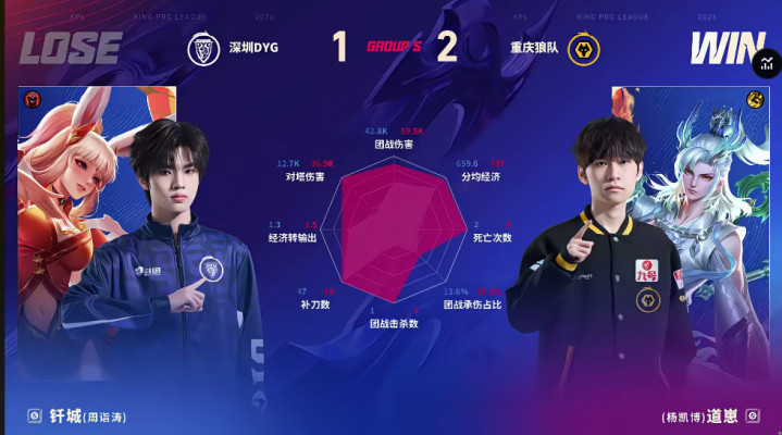 > SuncityGroup 狼队/DYG第三局数据对比: 谈崽敖隐数据全包围钎城公孙离
