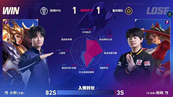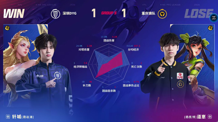 SuncityGroup 狼队/DYG第三局数据对比: 谈崽敖隐数据全包围钎城公孙离