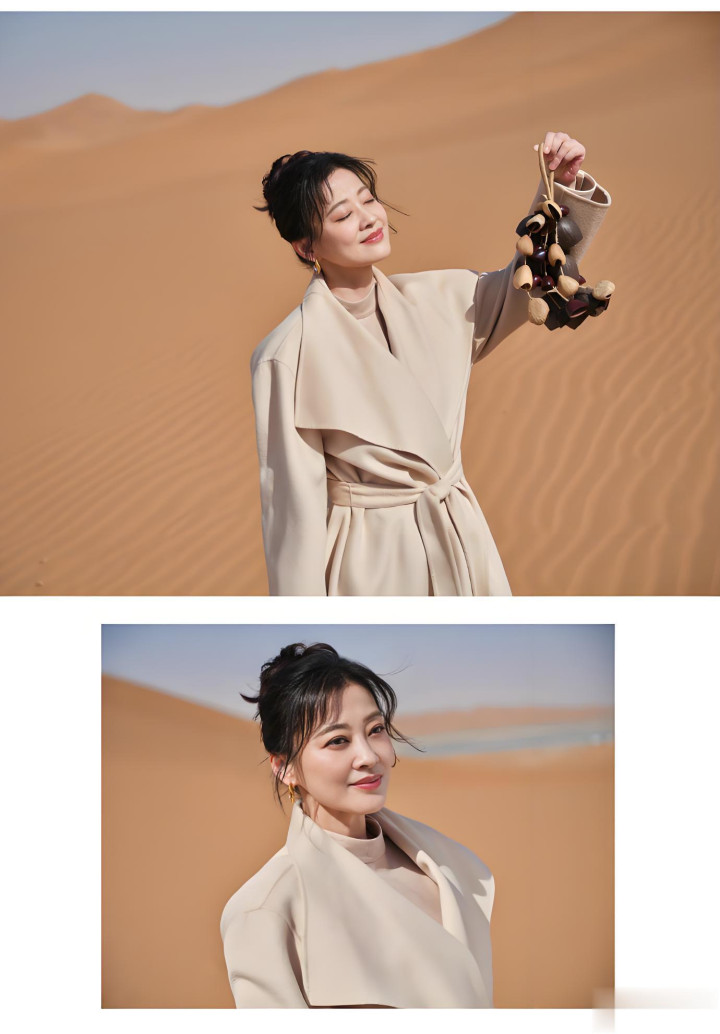 别东谈主拍植树,要么在公园,要么在景区。梅婷倒好,径直把场景选在了内蒙古乌兰布和沙漠的沙金套海。她在这里种下象征环保的“人命树”。