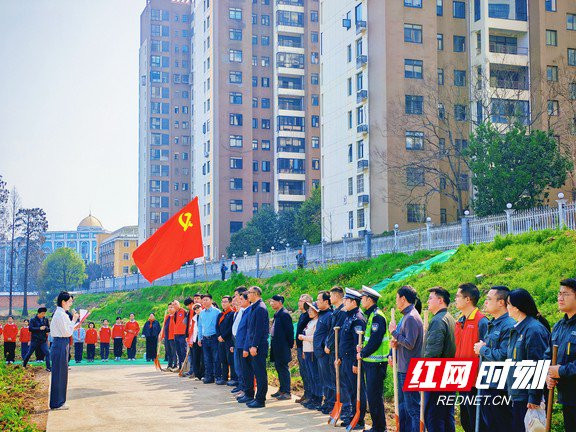 “党建引颈团聚力院地共建添新绿”植树节主题志愿动作现场。