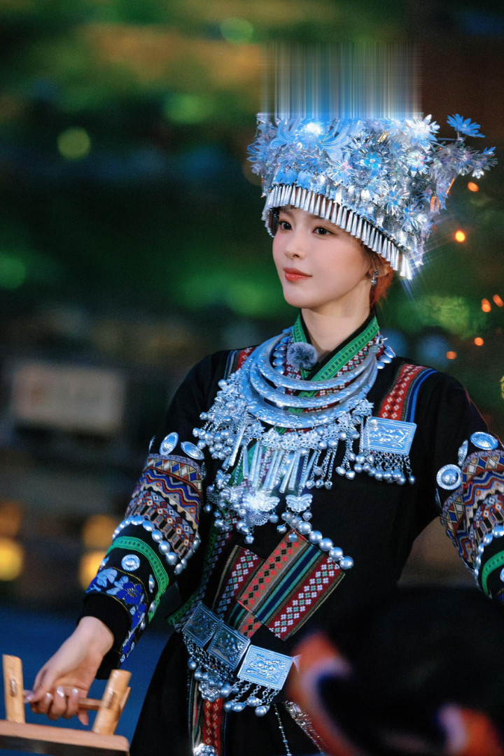 切换为鲜嫩明媚的民族风造型,大阳城孤单缀满银饰的传统衣饰,繁复的银冠、多层项圈与良好刺绣,衬出民风纹样的精雅漂后,展现着民族文化的稳固与丽都。